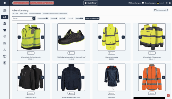 Egal ob 200 oder 10.000 Mitarbeiter – EasyWear wächst mit. Neue Standorte, Abteilungen oder Lieferanten lassen sich schnell und zentral integrieren. So bleibt der Verwaltungsaufwand auch bei wachsendem Unternehmen konstant niedrig. So einfach geht Arbeitskleidung.