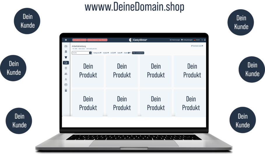 Con la nostra soluzione white label, non solo offrite ai vostri clienti un negozio online, ma anche un potente strumento per l'ottimizzazione dei processi. I vostri clienti beneficiano di tutte le funzioni di EasyWear, ma vedono solo la vostra gamma di prodotti. Questo significa che non vendete solo abbigliamento da lavoro, ma vera efficienza. A differenza dei classici sistemi di negozio come Shopware, EasyWear offre una soluzione completa e specializzata, fatta su misura per i rivenditori di abbigliamento da lavoro.